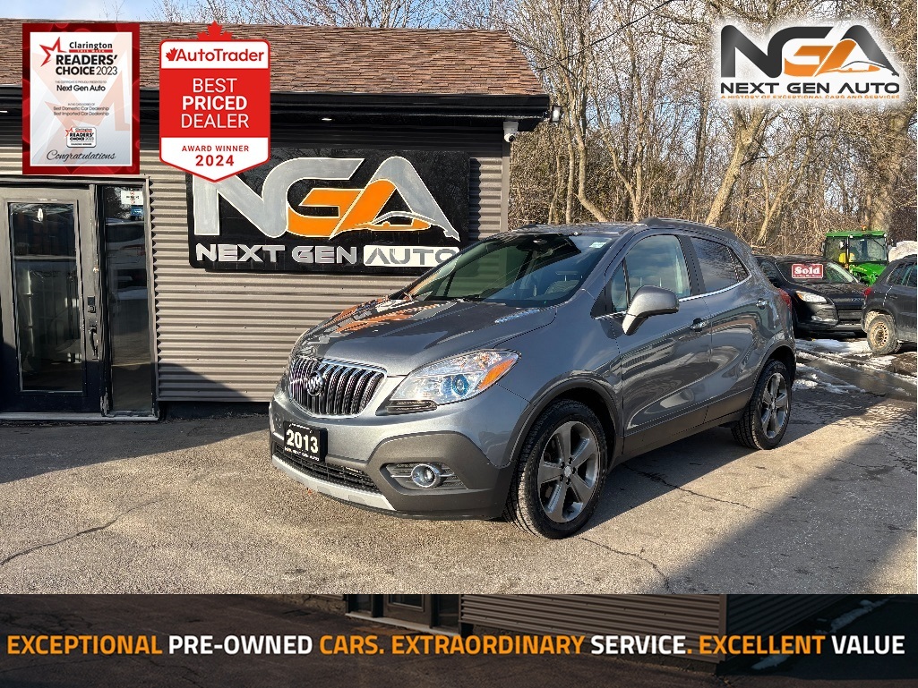 Recent Arrival! NO ADMIN FEES! NO GAS FEES! SAFETY CERTIFIED! FULLY DETAILED!, CLEAN CARFAX / NO ACCIDENTS!! Back-Up Camera, Bluetooth, Leatherette & Cloth Interior Seat Trim, 4-Way Power Driver Seat, 3.53 Axle Ratio, 4-Wheel Disc Brakes, 6 Speakers, ABS brakes, Air Conditioning, AM/FM radio, Brake assist, Bumpers: body-colour, CD player, Compass, Delay-off headlights, Driver door bin, Driver vanity mirror, Driver's Seat Mounted Armrest, Dual front impact airbags, Dual front side impact airbags, Electronic Stability Control, Emergency communication system: OnStar Directions & Connections, Front anti-roll bar, Front Bucket Seats, Front Driver & Passenger Fold Flat Deluxe Buckets, Front fog lights, Front reading lights, Front wheel independent suspension, Fully automatic headlights, Heated door mirrors, Illuminated entry, Knee airbag, Leather steering wheel, Occupant sensing airbag, Outside temperature display, Overhead airbag, Panic alarm, Passenger door bin, Passenger vanity mirror, Power door mirrors, Power steering, Power windows, Premium audio system: IntelliLink, Radio: IntelliLink AM/FM Stereo w/MP3 CD Playback, Rear side impact airbag, Rear window defroster, Rear window wiper, Remote keyless entry, Roof rack: rails only, Security system, Speed control, Speed-sensing steering, Split folding rear seat, Spoiler, Steering wheel mounted audio controls, Tachometer, Telescoping steering wheel, Tilt steering wheel, Traction control, Trip computer, Variably intermittent wipers, Wheels: 18'' x 7'' Silver Painted Aluminum. 2013 Buick Encore Convenience LEATHER CLOTH INTERIOR POWER SEAT CLEAN CARFAX 4D Sport Utility FWD ECOTEC 1.4L I4 MPI DOHC VVT Turbocharged CARFAX available upon request! At Next Gen Auto, we care as much as you care about your next new vehicle! Let us help you fall in love with your ride again. Reviews: * Owners tend to report that the Encore is cheerful to drive, easy to zip around in, flexible, and sufficiently roomy for four average-sized adults and a load of groceries. Tech-based features are easy to interface with, and many owners appreciate the added confidence of the OnStar system when travelling. In terms of all aspects of delivering a comfortable, relaxed, and easy-driving experience, the Encore seems to have impressed its owner community. Source: autoTRADER.ca