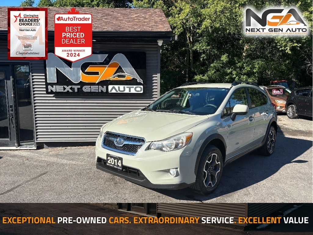Recent Arrival! NO ADMIN FEES! NO GAS FEES! SAFETY CERTIFIED! FULLY DETAILED!! Bluetooth, Heated Front Bucket Seats, Tonneau Cover, 17'' x 7.0JJ Aluminum Alloy Wheels, 3.70 Axle Ratio, 4-Wheel Disc Brakes, 6 Speakers, ABS brakes, Air Conditioning, AM/FM radio, Automatic temperature control, Brake assist, Bumpers: body-colour, Cloth Upholstery, Driver door bin, Driver vanity mirror, Dual front impact airbags, Dual front side impact airbags, Electronic Stability Control, Four wheel independent suspension, Front anti-roll bar, Front fog lights, Front reading lights, Fully automatic headlights, Heated door mirrors, High intensity discharge headlights: Xenon, Illuminated entry, Knee airbag, Leather Shift Knob, Low tire pressure warning, Occupant sensing airbag, Outside temperature display, Overhead airbag, Panic alarm, Passenger door bin, Passenger vanity mirror, Power door mirrors, Power steering, Power windows, Radio data system, Radio: Advanced AM/FM/CD/MP3/WMA Audio System, Rear anti-roll bar, Rear window defroster, Rear window wiper, Remote keyless entry, Roof rack: rails only, Security system, Speed control, Speed-sensing steering, Split folding rear seat, Spoiler, Steering wheel mounted audio controls, Tachometer, Telescoping steering wheel, Tilt steering wheel, Traction control, Trip computer, Variably intermittent wipers. 2014 Subaru XV Crosstrek Sport Package 4D Sport Utility AWD 2.0L 16V DOHC Awards: * IIHS Canada Top Safety Pick CARFAX available upon request! At Next Gen Auto, we care as much as you care about your next new vehicle! Let us help you fall in love with your ride again. Reviews: * Manoeuvrability, feature content, fuel mileage, unflappable AWD traction and a great driving position were all reported as common owner praise-points, as were decent outward visibility, and easy entry and exit. Plentiful at-hand storage in the cabin, and overall flexibility, were rated highly as well. Braking performance is another owner-stated plus. Source: autoTRADER.ca