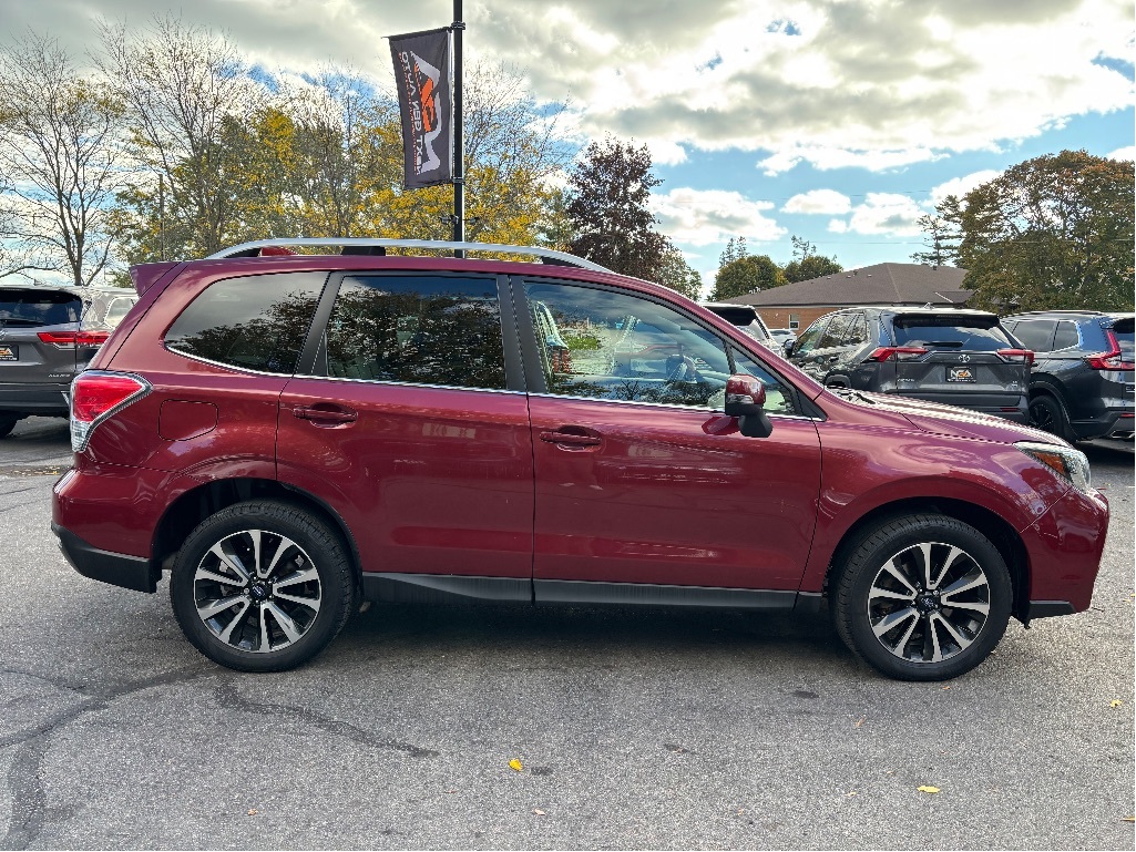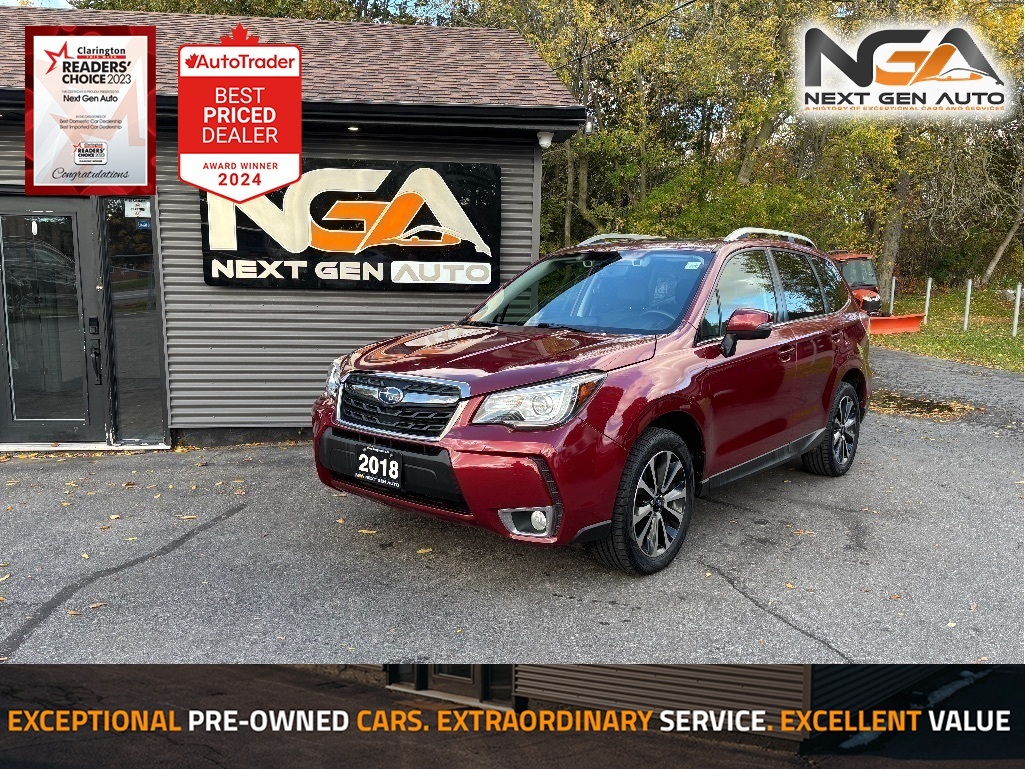 NO ADMIN FEES! NO GAS FEES! SAFETY CERTIFIED! FULLY DETAILED!! Navigation, Back-Up Camera, Bluetooth, Heated Front Bucket Seats, Leather Interior Seat Trim, Push Button Start w/ Smart Key System, Lane Departure Warning w/ Steering Assist, Blind Spot Monitor / Rear Cross-Traffic Alert, 8-Way Power Driver Seat w/ Lumbar Support, Panoramic Moonroof, Cargo Mat, Active Cruise Control, 4-Wheel Disc Brakes, 4.111 Axle Ratio, 6 Speakers, ABS brakes, Air Conditioning, AM/FM radio: SiriusXM, Anti-whiplash front head restraints, Automatic temperature control, Brake assist, Bumpers: body-colour, Driver door bin, Driver vanity mirror, Dual front impact airbags, Dual front side impact airbags, Electronic Stability Control, Four wheel independent suspension, Front anti-roll bar, Front dual zone A/C, Front fog lights, Front reading lights, Fully automatic headlights, Heated door mirrors, Illuminated entry, Knee airbag, Leather Shift Knob, Occupant sensing airbag, Outside temperature display, Overhead airbag, Overhead console, Panic alarm, Passenger vanity mirror, Power door mirrors, Power Liftgate, Power moonroof, Power steering, Power windows, Radio: AM/FM/CD/MP3/WMA Audio w/6.2'' Display, Rear anti-roll bar, Rear window defroster, Rear window wiper, Remote keyless entry, Roof rack: rails only, Security system, Speed control, Speed-sensing steering, Split folding rear seat, Spoiler, Steering wheel mounted audio controls, Tachometer, Telescoping steering wheel, Tilt steering wheel, Traction control, Trip computer, Variably intermittent wipers, Wheels: 18'' x 7'' Black Aluminum Alloy. 2018 Subaru Forester 2.0XT Touring LEATHER NAV PANO ROOF 4D Sport Utility AWD 2.0L 4-Cylinder DOHC Turbocharged Intercooled Awards: * ALG Canada Residual Value Awards CARFAX available upon request! At Next Gen Auto, we care as much as you care about your next new vehicle! Let us help you fall in love with your ride again. Reviews: * The Forester is highly rated by owners who valued the possibility of driving a manual-equipped AWD crossover. Overall performance, mileage, comfort, and capability are appreciated. Many report numerous easy-to-use interfaces, plenty of space, a flexible cargo hold, and a confidence-inspiring dynamic in various conditions in all seasons. Most owners say Forester feels safe, solid, and sturdy in all situations. Great outward visibility helps round out the package. Source: autoTRADER.ca