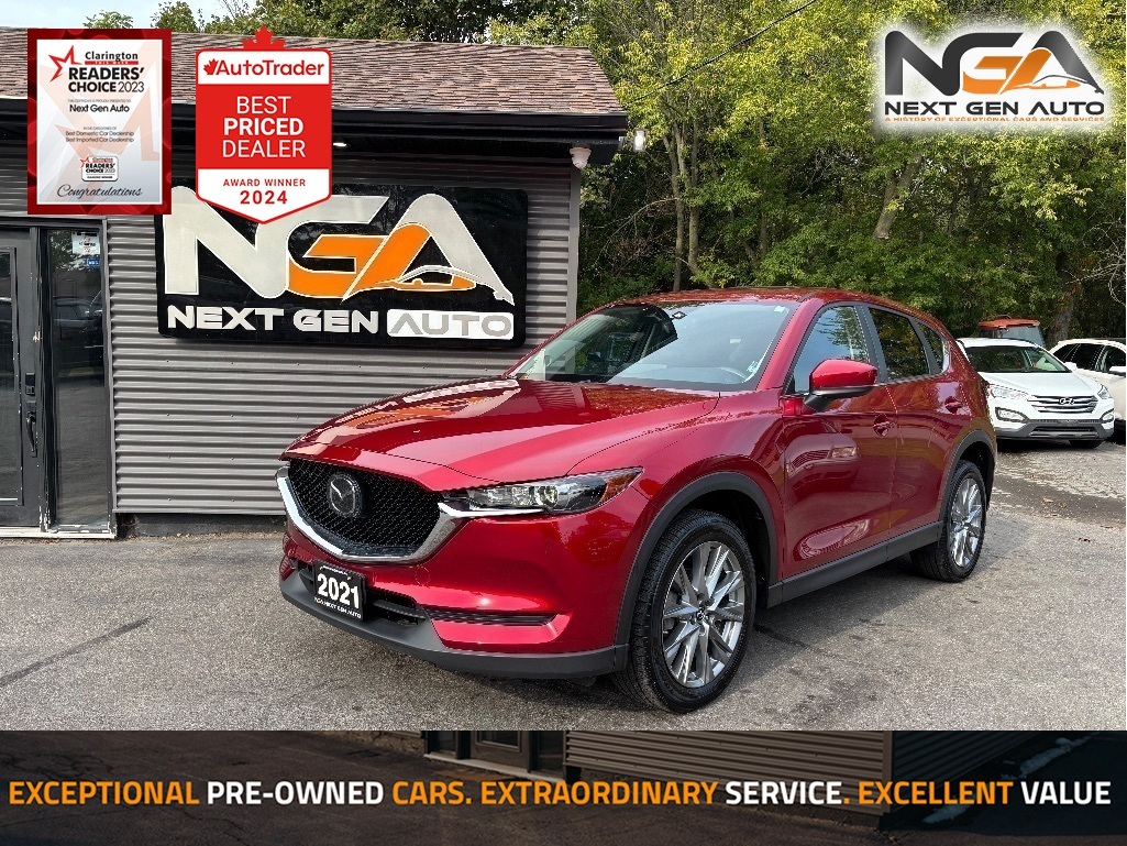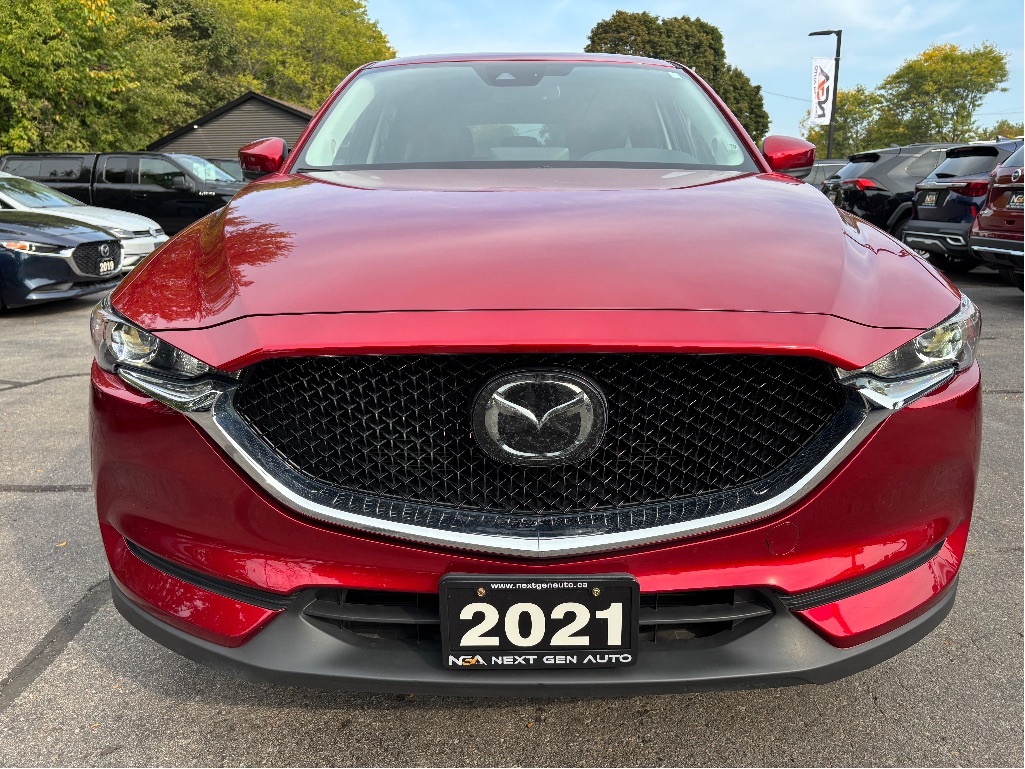 Recent Arrival! Odometer is 18722 kilometers below market average! NO ADMIN FEES! NO GAS FEES! SAFETY CERTIFIED! FULLY DETAILED! CLEAN CARFAX / NO ACCIDENTS!! Back-Up Camera, Apple Car Play / Android Auto, Bluetooth, Power Moonroof, Heated Front Bucket Seats, Leather Interior Seat Trim, Heated Leather-Wrapped Steering Wheel, Push Button Start w/ Smart Key System, Lane Departure Warning w/ Steering Assist, 8-Way Power Driver Seat w/ Lumbar Support, Active Cruise Control, 4-Wheel Disc Brakes, 4.624 Axle Ratio, 6 Speakers, ABS brakes, Air Conditioning, Alloy wheels, Auto High-beam Headlights, Auto-dimming Rear-View mirror, Brake assist, Bumpers: body-colour, Delay-off headlights, Driver door bin, Driver vanity mirror, Dual front impact airbags, Dual front side impact airbags, Electronic Stability Control, Emergency communication system, Exterior Parking Camera Rear, Four wheel independent suspension, Front anti-roll bar, Front reading lights, Fully automatic headlights, Heated door mirrors, Illuminated entry, Leather Shift Knob, Low tire pressure warning, Occupant sensing airbag, Outside temperature display, Overhead airbag, Overhead console, Panic alarm, Passenger door bin, Passenger vanity mirror, Power door mirrors, Power Liftgate, Power steering, Power windows, Radio: AM/FM/HD w/6 Speakers, Rain sensing wipers, Rear anti-roll bar, Rear reading lights, Rear window defroster, Rear window wiper, Remote keyless entry, Speed control, Speed-sensing steering, Split folding rear seat, Spoiler, Steering wheel mounted audio controls, Tachometer, Telescoping steering wheel, Tilt steering wheel, Traction control, Trip computer, Turn signal indicator mirrors, Variably intermittent wipers. 2021 Mazda CX-5 GS 4D Sport Utility AWD I4 CARFAX available upon request! At Next Gen Auto, we care as much as you care about your next new vehicle! Let us help you fall in love with your ride again. Reviews: * The Mazda CX-5 is highly rated for looking and feeling more expensive than it is. Since its introduction, this model has been sought-after by shoppers looking for an up-level crossover driving experience without the up-level price tag. On all elements of styling, handling, and dynamics, owners seem to be impressed. Source: autoTRADER.ca