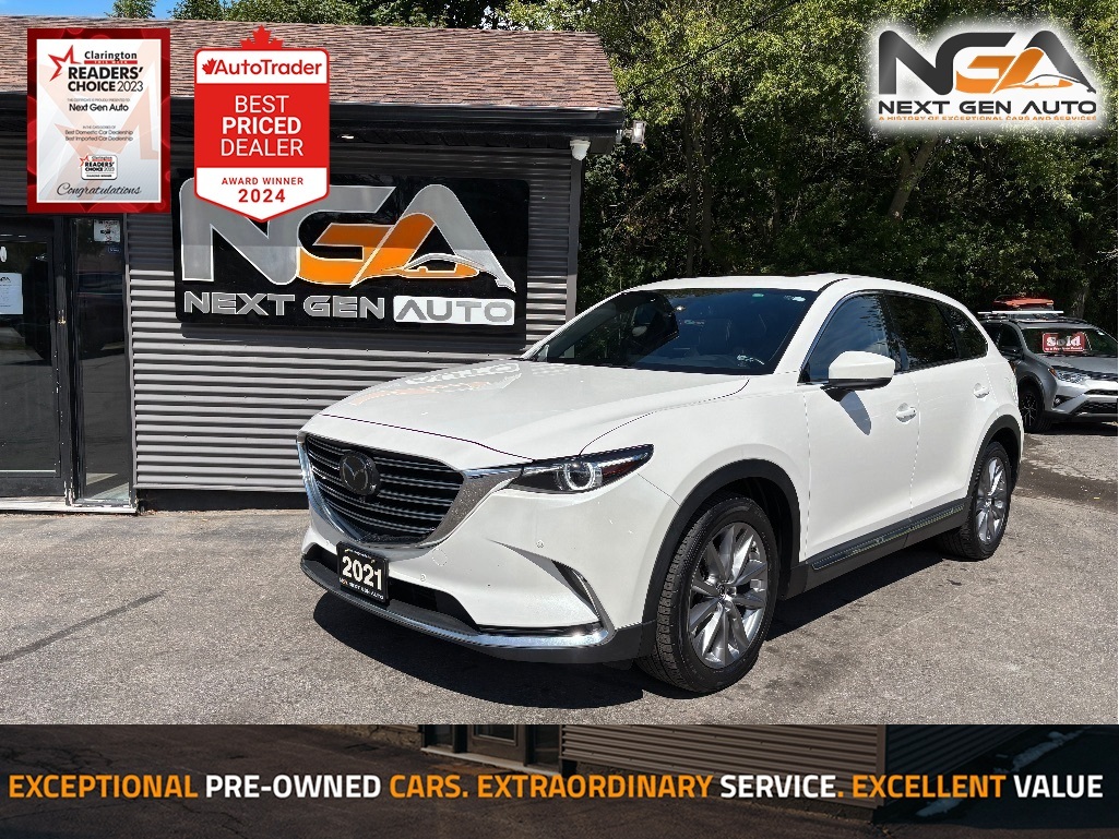 Odometer is 8853 kilometers below market average! NO ADMIN FEES! NO GAS FEES! SAFETY CERTIFIED! FULLY DETAILED!, ONE OWNER, CLEAN CARFAX / NO ACCIDENTS!! Navigation, Back-Up Camera, Apple Car Play / Android Auto, Bluetooth, Power Moonroof, Leather Interior Seat Trim, Heated Leather-Wrapped Steering Wheel, Push Button Start w/ Smart Key System, Lane Departure Warning w/ Steering Assist, 8-Way Power Driver Seat w/ Lumbar Support, 4-Way Power Passenger Seat, Memory Seat Function, Rear Heated Seats, Heated & Ventilated Front Bucket Seats, Rear Parking Sonars, Heads Up Display, 7 Passenger Seating, Active Cruise Control, AWD, 12 Speakers, 3rd row seats: bench, 4-Wheel Disc Brakes, 4.411 Axle Ratio, ABS brakes, Air Conditioning, AM/FM radio: SiriusXM, Auto High-beam Headlights, Auto-dimming Rear-View mirror, Automatic temperature control, Brake assist, Bumpers: body-colour, Compass, Delay-off headlights, Driver door bin, Driver vanity mirror, Dual front impact airbags, Dual front side impact airbags, Electronic Stability Control, Emergency communication system: MAZDA CONNECT, Four wheel independent suspension, Front anti-roll bar, Front dual zone A/C, Front fog lights, Front reading lights, Fully automatic headlights, Garage door transmitter: HomeLink, Heated door mirrors, Illuminated entry, Leather Shift Knob, Leather steering wheel, Low tire pressure warning, Occupant sensing airbag, Outside temperature display, Overhead airbag, Overhead console, Passenger door bin, Passenger vanity mirror, Power door mirrors, Power Liftgate, Power steering, Power windows, Radio: AM/FM/HD Bose Audio System w/12 Speakers, Rain sensing wipers, Rear air conditioning, Rear reading lights, Rear window defroster, Rear window wiper, Remote keyless entry, Speed control, Speed-sensing steering, Split folding rear seat, Spoiler, Steering wheel mounted audio controls, Tachometer, Telescoping steering wheel, Tilt steering wheel, Traction control, Trip computer, Turn signal indicator mirrors, Variably intermittent wipers, Wheels: 20'' Silver Alloy. 2021 Mazda CX-9 GT 4D Sport Utility AWD I4 Turbo CARFAX available upon request! At Next Gen Auto, we care as much as you care about your next new vehicle! Let us help you fall in love with your ride again.