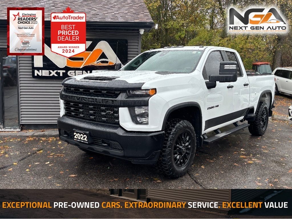 Recent Arrival! NO ADMIN FEES! NO GAS FEES! SAFETY CERTIFIED! FULLY DETAILED!, CLEAN CARFAX / NO ACCIDENTS!! Preferred Equipment Group Dark Essentials Package Safety Confidence Package WT Convenience Package Suspension Package Back-Up Camera, Apple Car Play / Android Auto, Bluetooth, Leather Interior Seat Trim, 6-Speed Automatic, 4WD, Jet Black Leather, 120-Volt Bed Mounted Power Outlet, 120-Volt Instrument Panel Power Outlet, 170 Amp Alternator, 2-Speed Electronic Shift Transfer Case, 220 Amp Alternator, 3.73 Rear Axle Ratio, 4-Wheel Disc Brakes, 4.2'' Diagonal Colour Display Driver Info Centre, 6-Speaker Audio System, 720 Cold-Cranking Amps Heavy-Duty Battery, ABS brakes, Air Conditioning, AM/FM radio, Automatic Emergency Braking, Black Chevytec Spray-On Bedliner w/Chevrolet Logo, Black Front Bumper, Black Front Grille, Black Mirror Caps, Black Moulded Splash Guards (LPO), Black Name Plates (LPO), Black Rear Bumper, Black Tailgate CHEVROLET Lettering (LPO), Black Work Step (LPO), Bluetooth For Phone, Brake assist, Dark Essentials Package (LPO), Deep-Tinted Glass, Delay-off headlights, Driver door bin, Dual front impact airbags, Dual front side impact airbags, Electric Rear-Window Defogger, Electronic Cruise Control w/Set & Resume Speed, Electronic Stability Control, Engine Block Heater, EZ Lift Power Lock & Release Tailgate, Forward Collision Alert, Front 40/20/40 Split-Bench Seats, Front anti-roll bar, Front Black Bowtie Emblem (LPO), Front reading lights, Front wheel independent suspension, Fully automatic headlights, Gooseneck/5th Wheel Prep Package, Heated Vertical Trailering Mirrors, High-Visibility Vertical Trailering Mirrors, Integrated Trailer Brake Controller, Locking Tailgate, Low tire pressure warning, Manual Tailgate Function w/No EZ Lift, Manual Tilt-Wheel Steering Column, Occupant sensing airbag, Outside temperature display, Overhead airbag, Overhead console, Passenger door bin, Passenger vanity mirror, Power Rear Windows w/Express Down, Power steering, Power windows, Preferred Equipment Group 1WT, Radio: Chevrolet Infotainment 3 System, Rear 60/40 Folding Bench Seat (Folds Up), Rear reading lights, Rear step bumper, Remote Keyless Entry, Rubberized-Vinyl Floor Covering, Safety Confidence Package, Solar Absorbing Tinted Glass, Split folding rear seat, Steering Wheel Audio Controls, Suspension Package, Tachometer, Tilt steering wheel, Traction control, Trip computer, Upfitter Switch Kit (5), Variably intermittent wipers, Voltmeter, WT Convenience Package. 2022 Chevrolet Silverado 2500HD Work Truck LEATHER 6 PASS CLEAN CARFAX 4WD 6.6L V8 CARFAX available upon request! At Next Gen Auto, we care as much as you care about your next new vehicle! Let us help you fall in love with your ride again.
