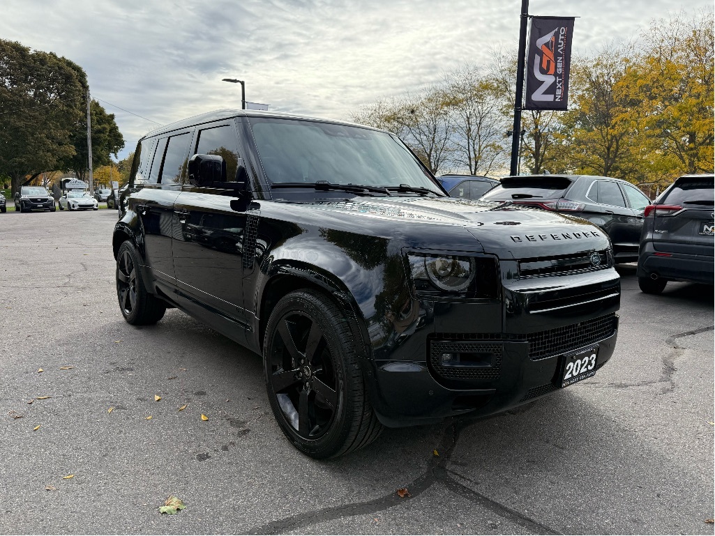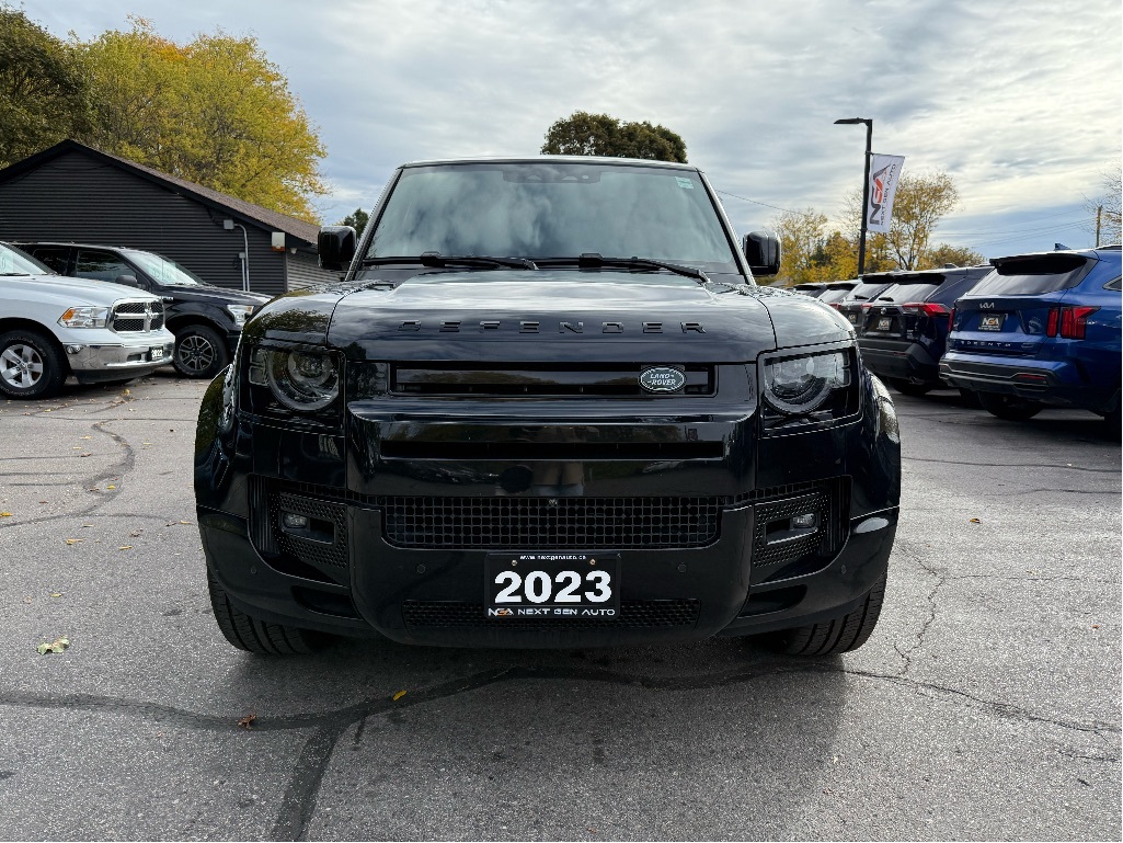 Recent Arrival! NO ADMIN FEES! NO GAS FEES! SAFETY CERTIFIED! FULLY DETAILED!, ONE OWNER, CLEAN CARFAX / NO ACCIDENTS!! Navigation, Back-Up Camera, Apple Car Play / Android Auto, Bluetooth, Leather Interior Seat Trim, Heated Leather-Wrapped Steering Wheel, Push Button Start w/ Smart Key System, Lane Departure Warning w/ Steering Assist, Blind Spot Monitor / Rear Cross-Traffic Alert, Front & Rear Parking Sonars, Automatic High Beams, 4-Way Power Passenger Seat, Memory Seat Function, Wireless Smartphone Charging, Panoramic Moonroof, Heated & Ventilated Front Bucket Seats, 14-Way Power Driver Seat w/ Lumbar Support, Heads Up Display, Cooler Box, 14-Way Climate Electric Memory Seats, 15 Speakers, 3.55 Axle Ratio, 4-Wheel Disc Brakes, ABS brakes, Adaptive suspension, Air Conditioning, AM/FM radio: SiriusXM, Auto High-beam Headlights, Auto tilt-away steering wheel, Auto-dimming door mirrors, Auto-dimming Rear-View mirror, Automatic temperature control, Brake assist, Bumpers: body-colour, Compass, Delay-off headlights, Driver door bin, Driver vanity mirror, Dual front impact airbags, Dual front side impact airbags, Electronic Stability Control, Four wheel independent suspension, Front anti-roll bar, Front dual zone A/C, Front fog lights, Front reading lights, Fully automatic headlights, Garage door transmitter: HomeLink, Headlight cleaning, Heated door mirrors, Illuminated entry, Leather Shift Knob, Low tire pressure warning, Navigation system: Connected Navigation PIVI Pro, Occupant sensing airbag, Outside temperature display, Overhead airbag, Overhead console, Panic alarm, Passenger door bin, Passenger vanity mirror, Power door mirrors, Power steering, Power windows, Radio: Meridian Surround Sound System, Rain sensing wipers, Rear air conditioning, Rear anti-roll bar, Rear fog lights, Rear reading lights, Rear window defroster, Rear window wiper, Remote keyless entry, Security system, SiriusXM Satellite Radio & HD Radio, Speed control, Speed-sensing steering, Speed-Sensitive Wipers, Steering wheel memory, Steering wheel mounted audio controls, Tachometer, Telescoping steering wheel, Tilt steering wheel, Traction control, Trip computer, Variably intermittent wipers, Weather band radio, Wheels: 22'' Gloss Black Style 5098. 2023 Land Rover Defender 110 V8 LEATHER NAV PANO ROOF ONE OWNER CLEAN CARFAX 4D Sport Utility 4WD 5.0L V8 Supercharged CARFAX available upon request! At Next Gen Auto, we care as much as you care about your next new vehicle! Let us help you fall in love with your ride again.